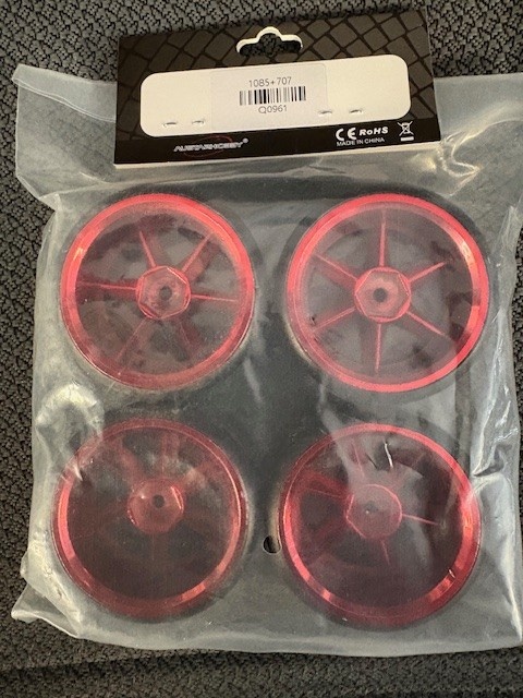 AUS Q0961 60mm WHEEL CHRM RED 12mm WHEEL HEX / DRIFT TIRE 4 pack