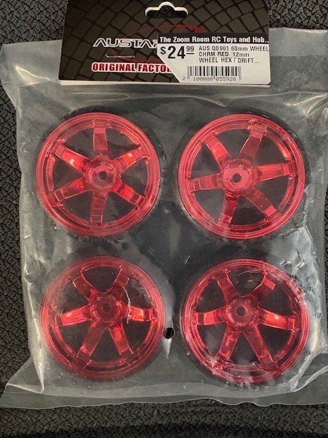 AUSTARHOBBY - AUS Q0961 60mm WHEEL CHRM RED 12mm WHEEL HEX / DRIFT TIRE