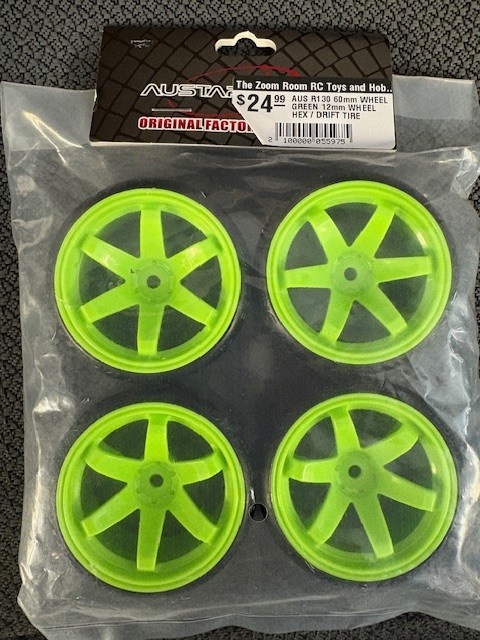 AUS R130 60mm WHEEL GREEN 12mm WHEEL HEX / DRIFT TIRE pack of 4