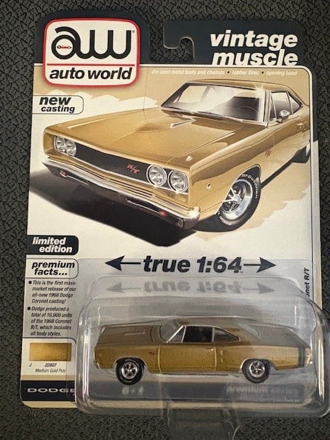Autoworld AW 07650 1968 DODGE CORONET R/T MEDIUM GOLD POLY 1/64 DIE-CAST