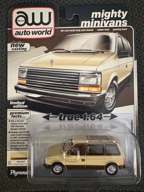Autoworld AW 07653 1987 PLYMOUTH VOYAGER LT. CREAM/GOLDEN BRONZE 1/64 DIE-CAST