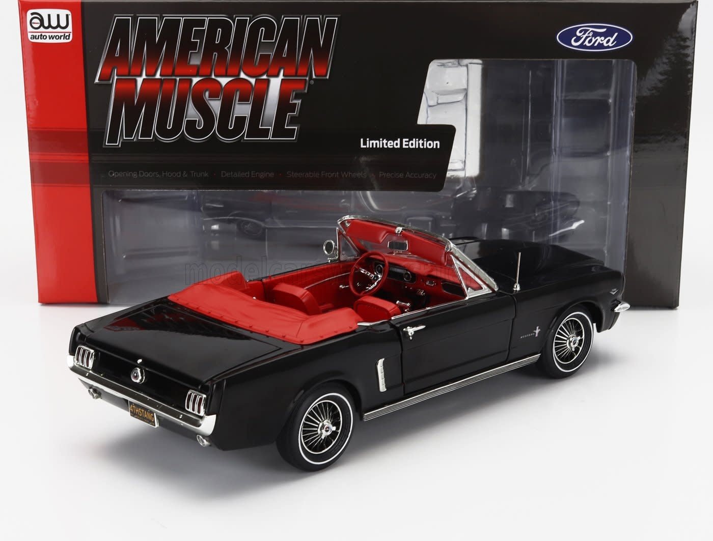 AUTOWORLD - AW 1312 1964-1/2 FORD MUSTANG CONVERTIBLE GLOSS BLACK 1/18 DIE-CAST