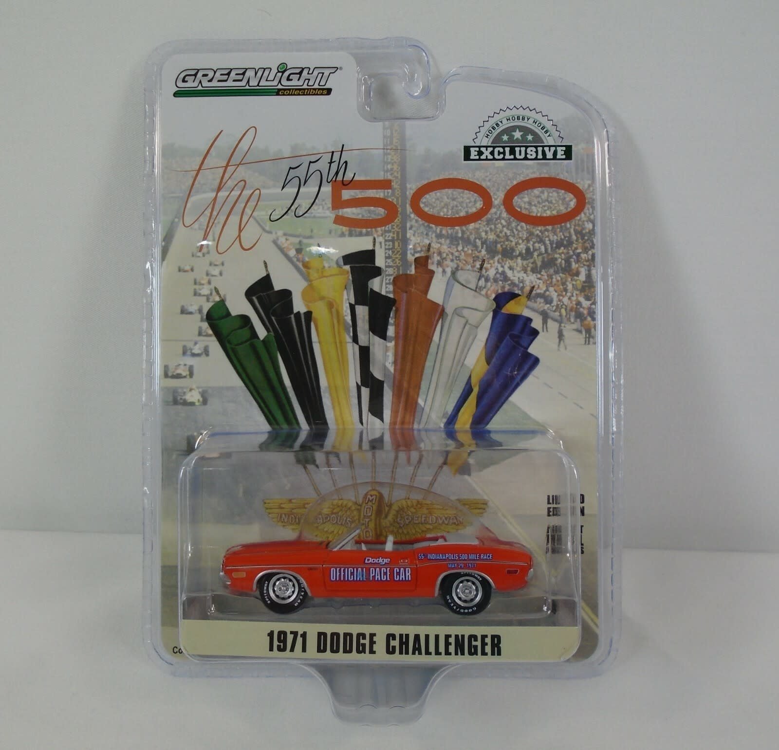 GREENLIGHT COLLECTIBLES - GLC 30144 1971 DODGE CHALLENGER 55TH INDY 500 1/64 DIE-CAST