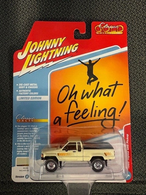 JOHNNY LIGHTNING - JL 06810A 1985 TOYOTA SR5 PICKUP IVORY WITH STRIPES 1/64 DIE-CAST