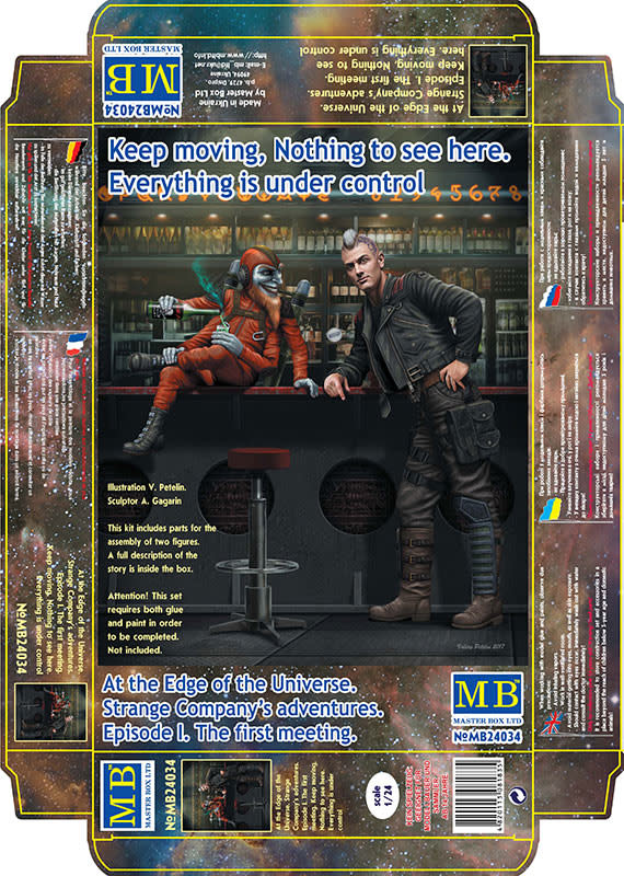 M/B 24034 MASTER BOX 1/24 At the Edge of the Universe. Strange Company's adventures. Episode I. The first meeting. Keep moving, Nothing to see here. Everything is under control . 1/24 SCALE , REQUIRES PAINT AND GLUE FOR COMPLETION