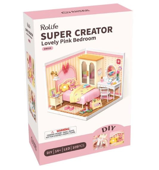 Rolife ROE DW016 Rolife Lovely Pink Bedroom DIY Plastic Miniature House 105 pieces